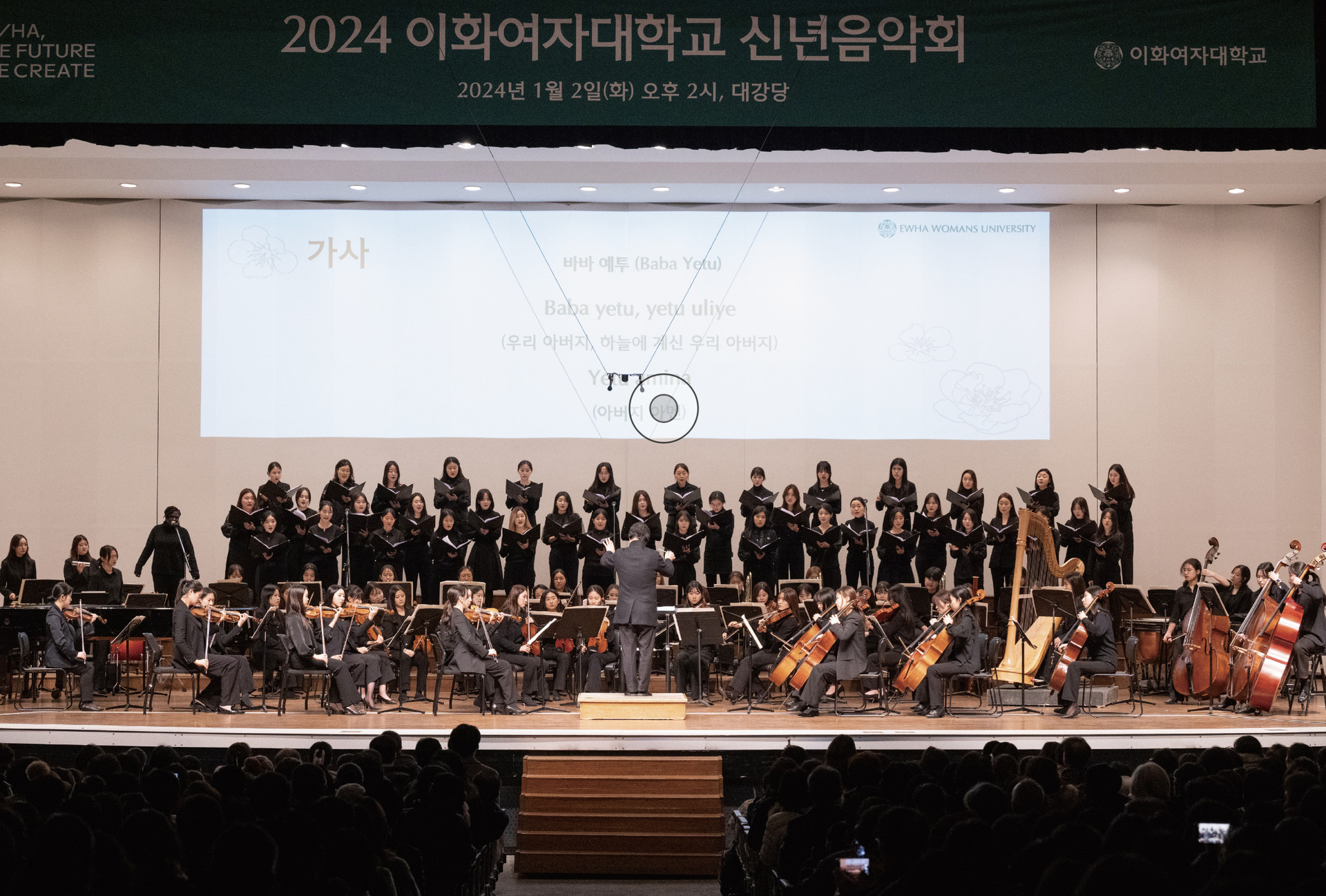 1월 2일(화) 오후 2시 대강당에서 ‘2024 신년음악회’를 성황리에 개최했다. 지역사회와 함께하기 위해 처음으로 서대문구민을 초청해 열린 이번 신년음악회에는 음악대학의 교수, 재학생, 졸업생이 모두 참여해 수준 높은 공연을 선보였으며, 본교 교직원 및 학생, 지역주민 등 2,800여 명이 참석해 만석을 이뤘다.