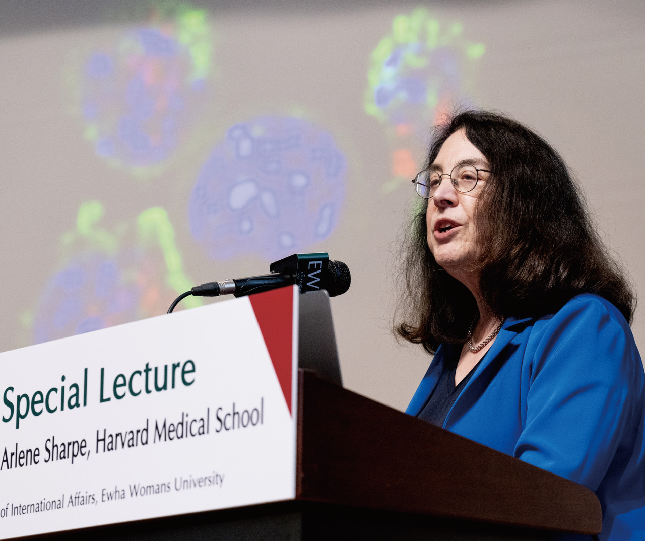 7 | 하버드대 방문단 본교와 하버드 간 협력 방안을 논의하고자 3월 26일(금) 하버드대 방문단이 본교를 방문했다. 마크 엘리엇(Mark C. Elliott) 하버드대 국제부총장을 비롯한 방문단은 본관에서 김은미 총장을 접견, 그간의 협력 현황을 확인하고 본교와 하버드 의과대학이 협력할 수 있는 여러 방안에 대해 논의했다. 이날 오후 5시에는 대학원관 중강당에서 하버드 의과대학 알린 샤프(Arlene Sharpe) 교수의 특별 강연이 진행됐다. 알린 샤프 교수는 하버드대학교 내 최고의 교수에게 주어지는 하버드 콜로코트로니스 교수(Kolokotrones University Professor)로, CTLA-4 및 PD-1의 면역 억제 기능을 포함한 T 세포의 작용 원리를 발견해 암 면역 치료의 기반을 마련한 면역학 분야 권위자다. |