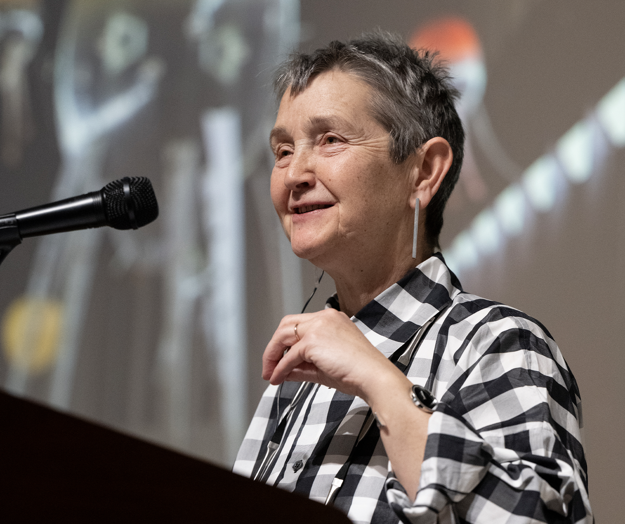 조형예술대학은 4월 11일(목) 현대미술 최고 권위자 프란시스 모리스(Frances Mary Morris CBE) 초빙석좌교수 특강을 개최했다. 프란시스 모리스는 세계 최고의 현대미술관으로 꼽히는 영국 테이트 모던 최초의 여성 관장으로 7년간 역임한 후 현재 명예관장을 맡고 있으며, 본교는 ‘이화 프론티어 10-10’ 사업의 일환으로 올 2월 모리스 교수를 서양화전공과 영상예술협동과정 초빙석좌교수로 영입했다. 현대미술의 전시 주제와 방식을 혁신하고 선도하는 최첨단 무대를 제공하며, 21세기 현대미술의 방향을 규정해 온 모리스 교수는 ‘테이트 모던: 변혁의 생태학(Tate Modern: Ecologies of Transformation)’을 주제로 한 이번 특강에서 대표 관장이자 베테랑 큐레이터로서 20년 넘게 몸담았던 영국 테이트 모던에서의 경험을 나눴다.